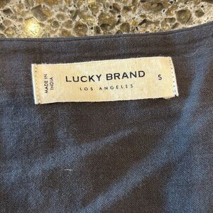 Lucky Brand dark gray eyelet button front tie waist top