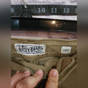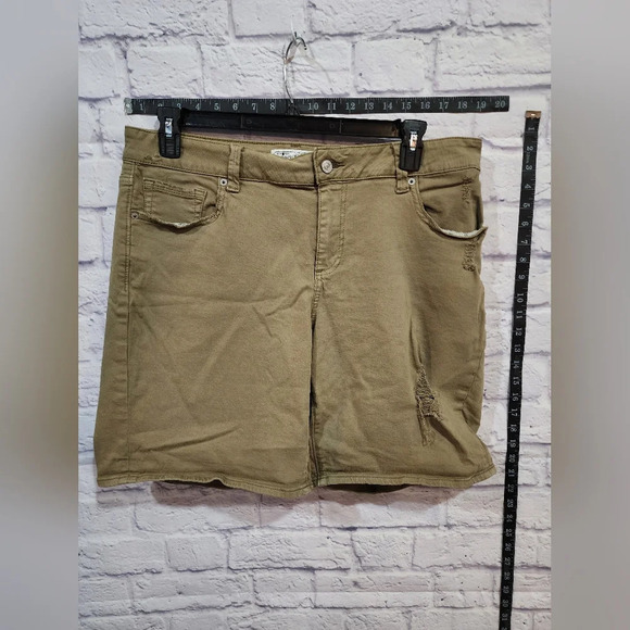 Lucky Brand green shorts with minor distresses details and subtle fray Size 14W