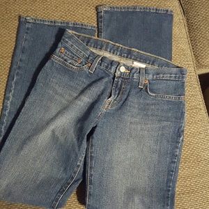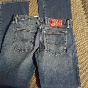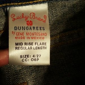 Lucky Brand jeans mid rise flare regular length size 4/27 dark wash and brown striped short sleeve sweater size large brand iZBYER.