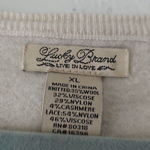 Lucky Brand lace cream oatmeal color wool cashmere blend cardigan Sz Xl