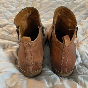 Cute leather boots by Lucky Brand size 7 1/2 used but still with lots of life left Watermark on the top of one boot as shown in pictures.