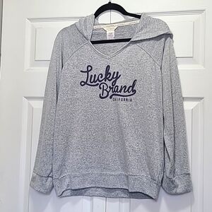 Lucky Brand light gray size m lightweight hooded long sleeve sweatshirt top Great condition