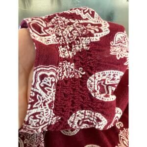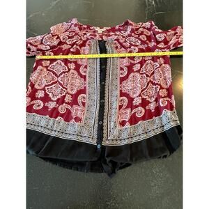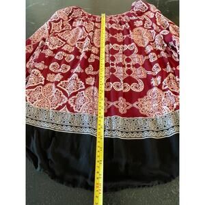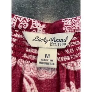 Lucky Brand long sleeve button front blouse red/black geo Med.