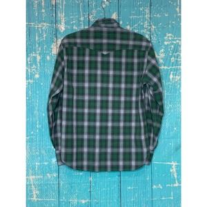 Lucky Brand Dungaree plaid long sleeves snap button green shirt size small