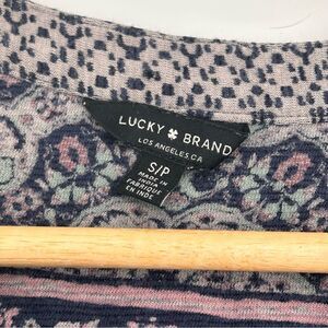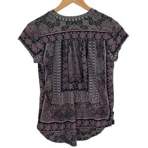 Lucky Brand navy and pink boho v-neck short sleeve top size small. Excellent preowned condition so cute with denim. See photos for details