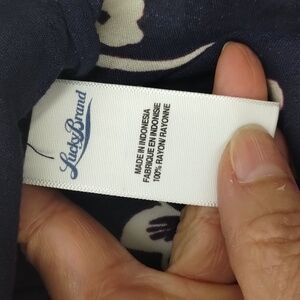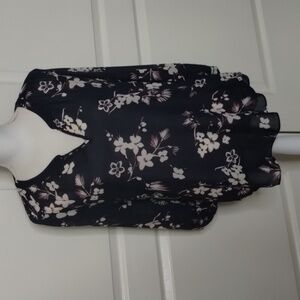 Lucky Brand peasant blouse navy floral ivory and pink 3/4 sleeve sheer v-neck sm