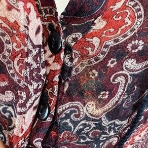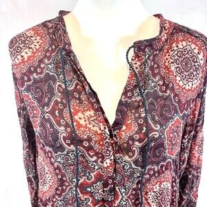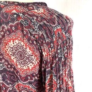 Lucky Brand pleated dark red mandala boho peasant top size large