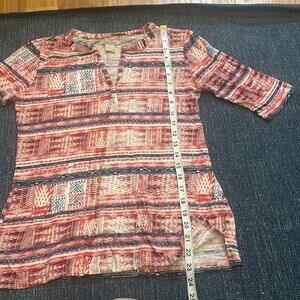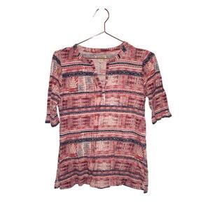 Lucky Brand red and Blue Mixed Print V-Neck Boho Top Womans Size small