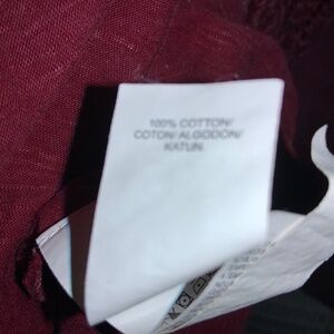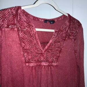 Lucky Brand red cotton split neck embroidered peasant top Sz M distressed