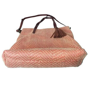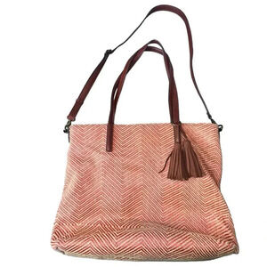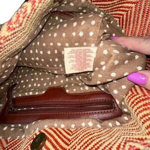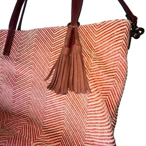 Lucky Brand red & tan two tone woven large crossbody tote bag