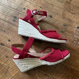 Lucky Brand red strappy raffia 7.5 wedge heel sandals