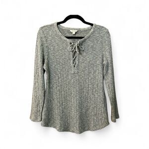 Lucky Brand ribbed knit lace up long sleeve pullover top