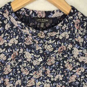 Lucky Brand round collar long sleeve pullover with decorative buttons at neck