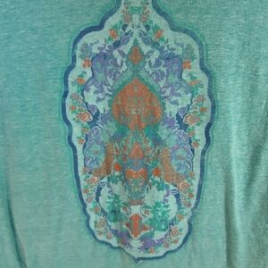 Womens Lucky Brand short sleeve shirt. Good condition! Measurements are 17" from armpit to armpit, 24" from shoulder to hem, and 14" from armpit to hem.