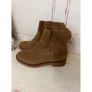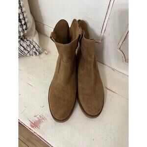 Lucky Brand size 8 brown suede pull on booties in excellent condition. Heel is 1 1/2”.