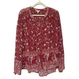 Lucky Brand size L floral paisley relaxed fit button front peasant blouse EUC