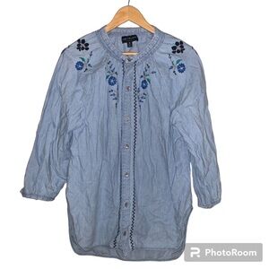 Lucky Brand size medium embroidered peasant shirt button down chambray floral