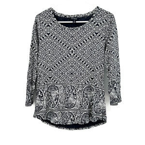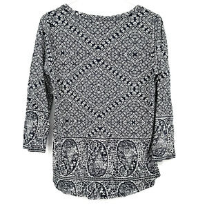 Lucky Brand size medium long sleeve blouse top shirt blue white geometric print
