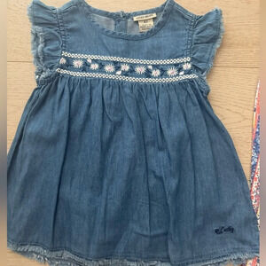 Excellent condition sleeveless denim shirt with leggings and button detail on leggings