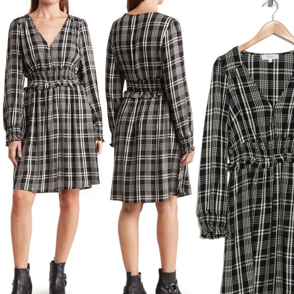Lucky Brand, smocked waist plaid dress