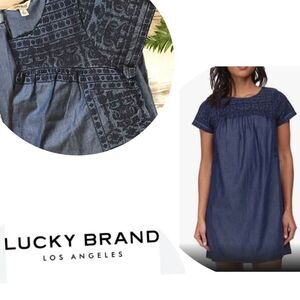 Lucky Brand, smocked waist plaid dress.