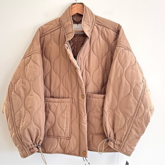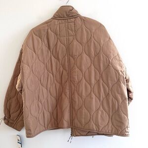 Lucky Brand tan quilted mandarin collar cropped boxy puffer chore jacket XL