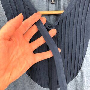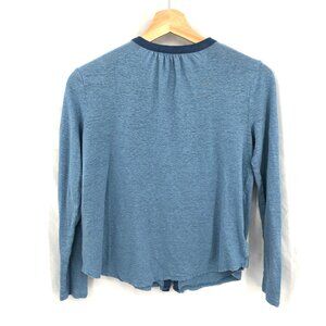 Lucky Brand tie neck shirt boho tuxedo light denim Blue prairie peasant top XS
