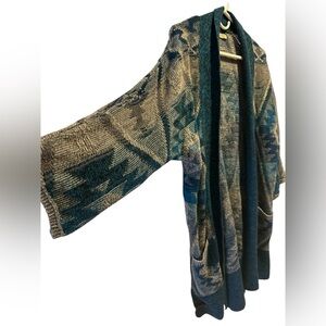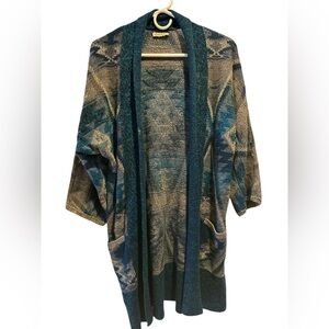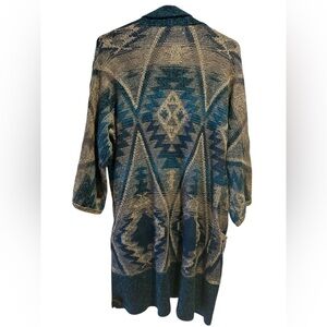 Lucky Brand tribal print gray turquoise 3/4 sleeves open front cardigan