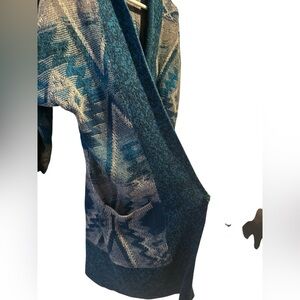 Lucky Brand tribal print gray turquoise 3/4 sleeves open front cardigan. Size XS/S.