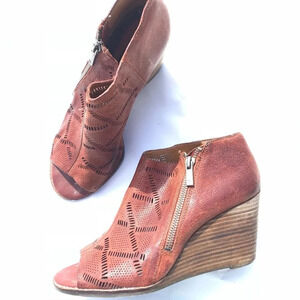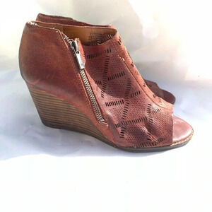 Lucky Brand wedge leather bootie size 38 Light wear to leather and heel Peep toe Side zipper