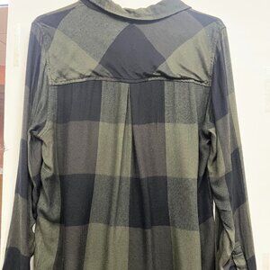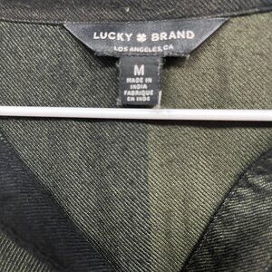 Lucky Brand women's flannel black and green plaid with cute button feature at the hem.