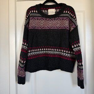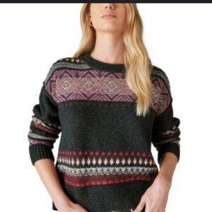Lucky Brand wool fair isle winter knit Christmas sweater grey sz Large
