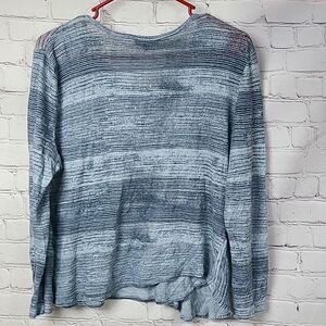 Lucky Brand 100% Linen Printed Ruffle Top Blue Multi Peplum Knit Tee Stripes LG
