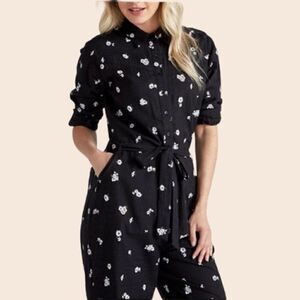 Lucky Brand Black Daisy Print Logan Jumpsuit Size Small Petite