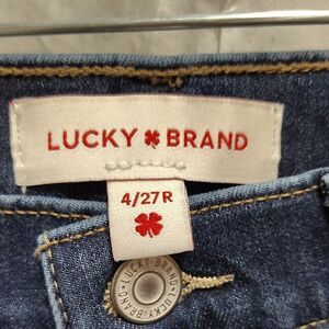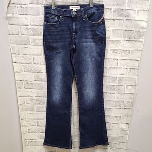 Embrace a stylish silhouette with these Lucky Brand jeans, featuring a flattering flare and wide leg design. The medium indigo blue color is enhanced by subtle fading and whiskering, offering a gently worn-in look. Perfect for adding a touch of vintage charm to your everyday wardrobe.