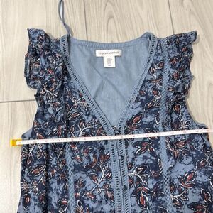 Lucky Brand Blue Floral Ruffle Cap Sleeve Short Cotton Dress V-neck Button Front Xs