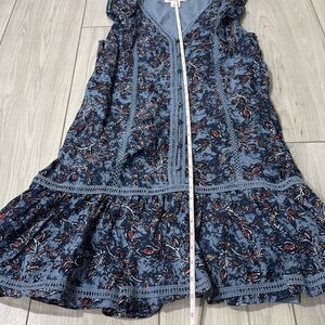 Lucky Brand Blue Floral Ruffle Cap Sleeve Short Cotton Dress V-neck Button Front