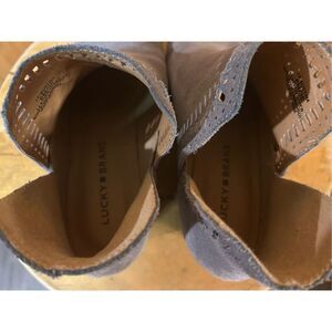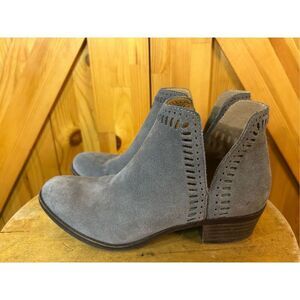 Lucky Brand Bustina Gray Suede Laser Cut Ankle Boots Size 6M