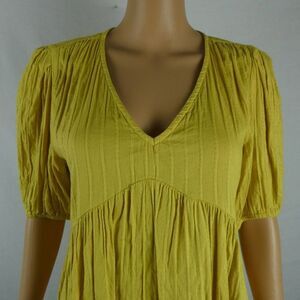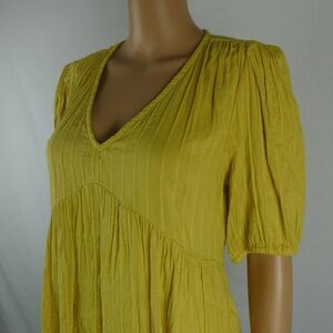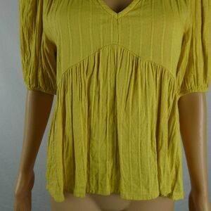 Lucky Brand Dark Yellow V Neck Short Sleeve Babydoll Blouse Shadow Stripe Small