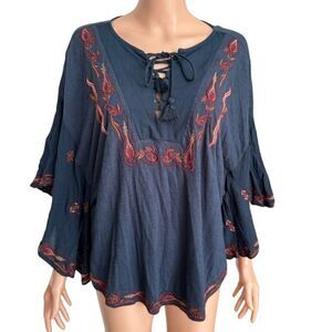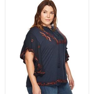 Lucky Brand Embroidered Peasant Top cotton blend size XL