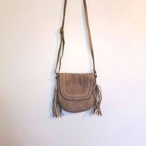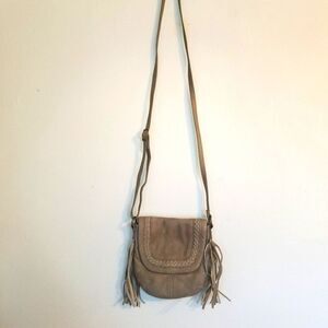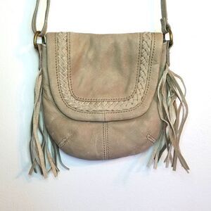 Lucky Brand Grey Tasseled Leather Cross Body Satchel