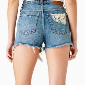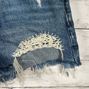 Lucky Brand Mom High Rise Button Fly Distressed Hemp Crochet Bohemian Short 8/29
