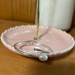 Lucky Brand Silver Hinged Bracelet with Pearl Accent #LBBR1