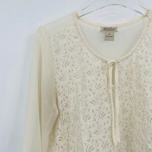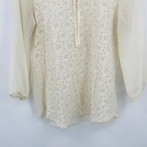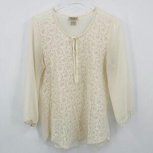 Lucky Brand Size Medium Ivory Floral Lace Front 3/4 Sleeve Boho Blouse Top