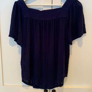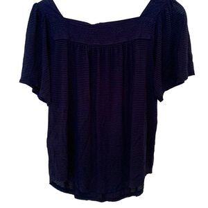 Lucky Brand Size: Small Square Neck Navy Blue Stripe Top, Semi-Sheer Blouse