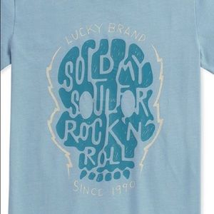 Lucky Brand-“Sold Soul for Rock n Roll” light blue tshirt dark script-Boys L NWT