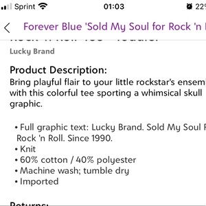 Lucky Brand-“Sold Soul for Rock n Roll” light blue t-shirt with dark blue script print-Boys L NWT