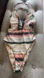 Stylish halter swimsuit with multicolor stripes. Perfect for beach days.