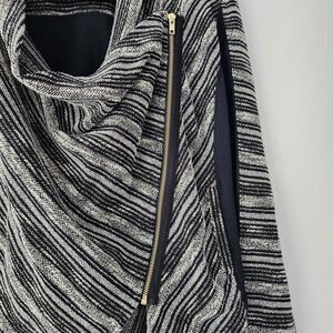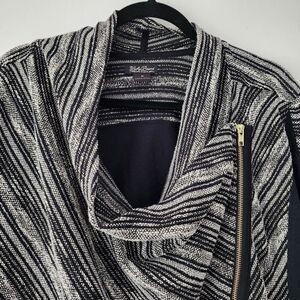 Lucky Brand Sweater Striped Open Front Moto Asymmetrical Zip Boho Cardigan sz M