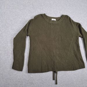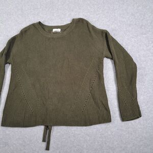 Lucky Brand Sweater Womens Medium Knit Oversized Back Straps Green